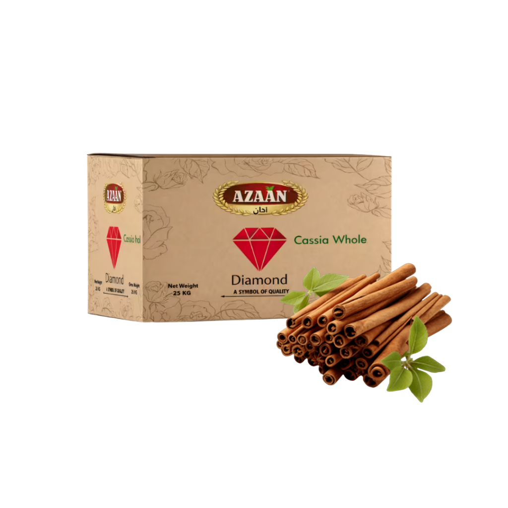 Spices Range Carefully sourced, aromatic, and potent spices from trusted sources for consistent quality. Request a Sample Premium Cumin Seed 111 Premium whole cumin seeds with bold aroma and uniform quality, ideal for culinary applications and large-scale food processing use. Request a Sample Cumin Seeds 222 Premium 222 Cumin Seeds, double sortex and double cleaned for exceptional purity and consistent quality. Packed in 25KG bags for freshness, secure storage, and dependable bulk supply worldwide. Request a Sample Azaan Cassia Whole Premium whole cassia bark with deep flavor and consistent thickness. Request a Sample Mina Cassia Whole Clean, aromatic cassia suitable for bulk and industrial buyers. Request a Sample Azaan Cloves Hand-selected whole cloves with strong aroma and essential oil richness. Request a Sample Mina Cloves Whole cloves with excellent aroma and export-grade quality. Request a Sample Azaan Premium Nutmeg with Shells Whole nutmeg with rich aroma and consistent quality for culinary and industrial use. Request a Sample Mina Nutmeg High-quality whole nutmeg with strong aroma and long shelf life. Request a Sample Azaan Red Chili High-quality dried red chili with vibrant color, balanced heat, and export-grade consistency. Request a Sample Azaan Long Pepper Premium long pepper with bold flavor, carefully sourced for B2B markets. Request a Sample Azaan Black Pepper Bold, pungent black pepper with strong aroma and consistent grain size. Request a Sample Mina Long Pepper Carefully sourced long pepper offering consistent aroma and quality. Request a Sample Azaan Lemon Yellow Food Color Specially formulated to deliver a bright, clean, and consistent "zesty" yellow hue that remains stable during mixing. Request a Sample Azaan Saffron Yellow Food Color Engineered to provide a deep, warm, and authentic golden glow that mimics the natural aesthetic of premium saffron. Request a Sample Azaan Kapur Kachri Authentic kapur kachri with natural fragrance, used in traditional and industrial applications. Request a Sample Azaan Fenugreek Clean, well-dried fenugreek seeds with natural bitterness and high purity. Request a Sample Azaan Dried Ginger Hygienically processed dried ginger with strong aroma and natural pungency. Request a Sample Monte Cardamom Premium green cardamom with bold fragrance and uniform pods.